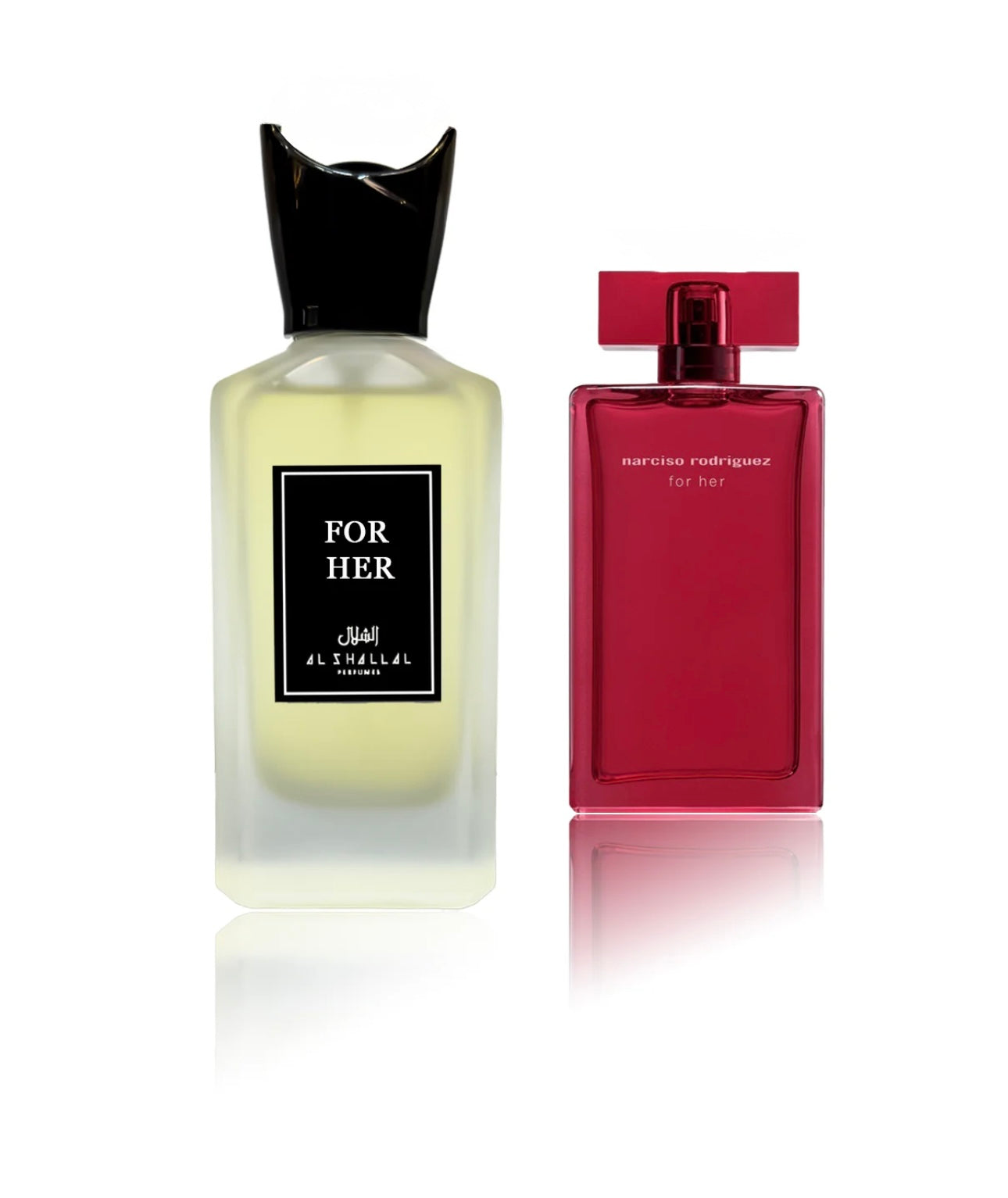 For Her is a feminine and vibrant fragrance that begins with a refreshing opening of peach and bergamot , a warm floral heart of musk and white flowers , and a rich base of vanilla and vetiver that gives it stability and an attractive, long-lasting scent.