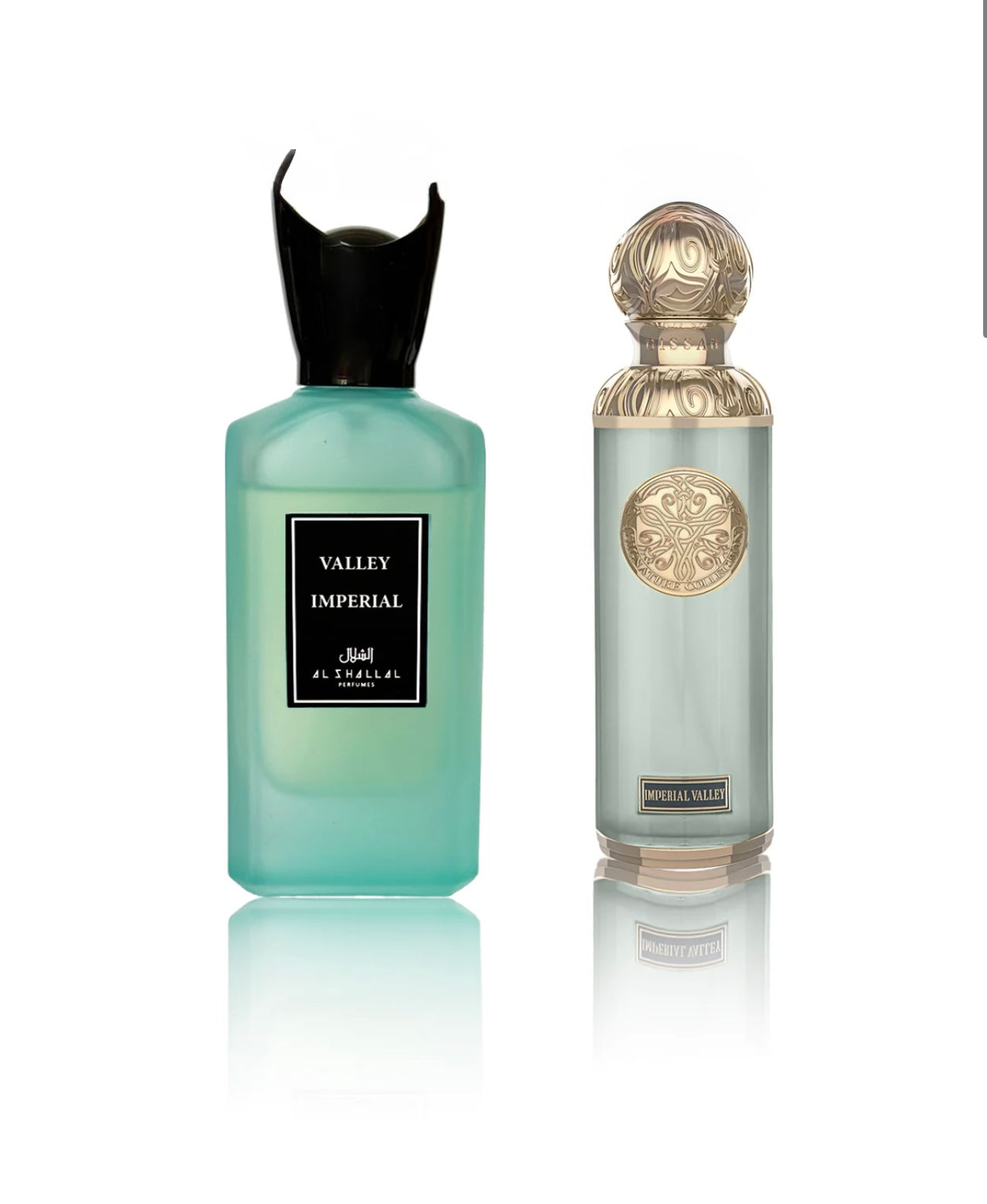 Imperial Valley embodies luxury with a modern oriental character, blending strength and elegance. It opens with notes of Sicilian bergamot, davana, and pink pepper, creating a uniquely vibrant sensation. This is followed by a rich heart of oud, white amber, and rosemary, reflecting a luxurious warmth. The base rests on a sophisticated blend of leather, musk, and Haitian vetiver, giving the fragrance depth and enduring elegance.